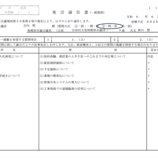 さて、来週6/25(火)の市議会本会議で一般質疑に登壇します。